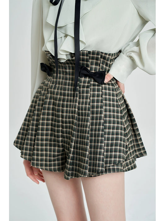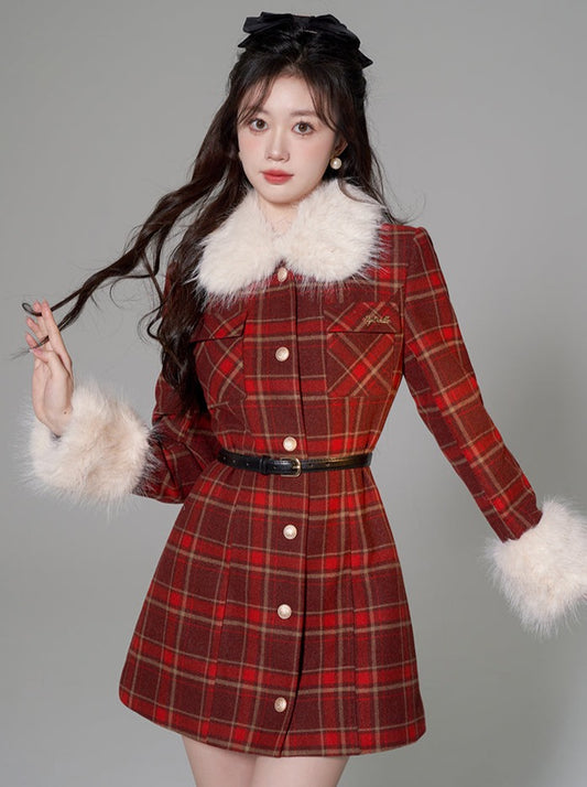 チェックウールフレグランスレースジャケット+プリーツティアードスカート