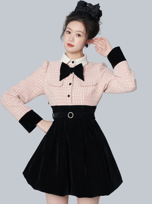 クイーンレトロフィルムフランスチェックジャケット+チェックミディアムスカート
