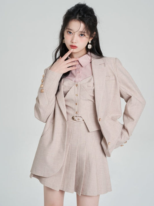 フレンチショートツイードジャケット+ツイードプリーツスカート