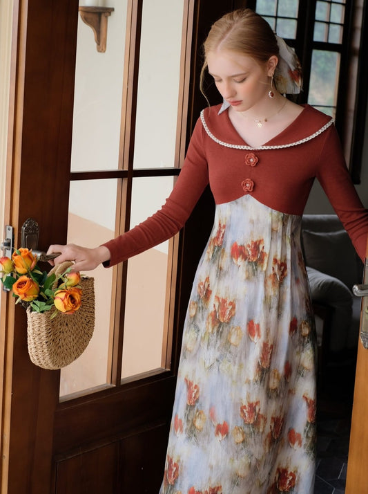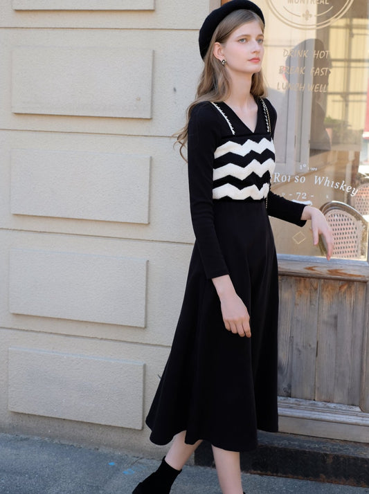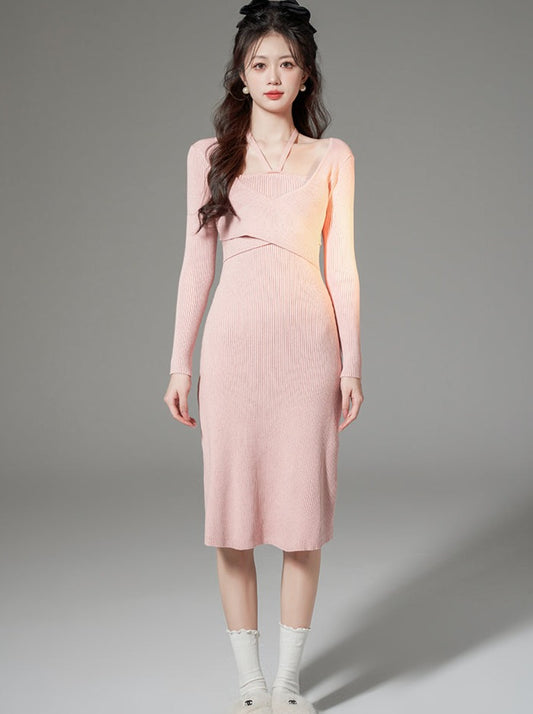 ホルターネックニットフェイクツーピーススリムニットワンピース