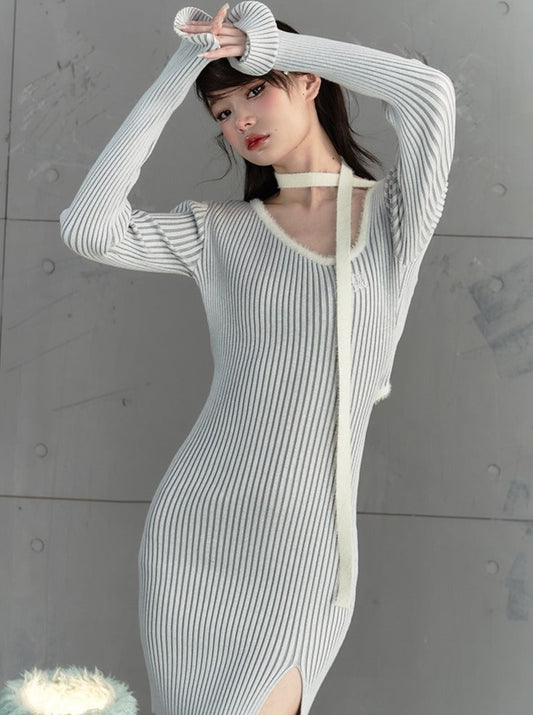 ピュアラストスタイルストリーマーピットストリップタイトワンピース
