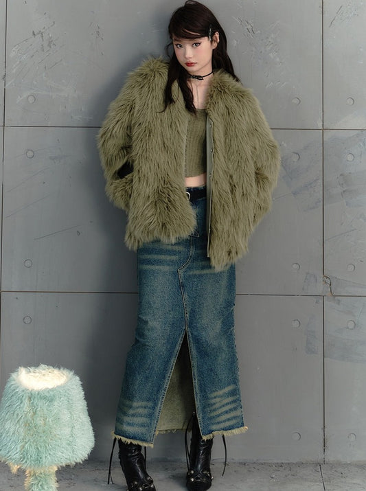 レトロスリットウォッシュデニムスカート