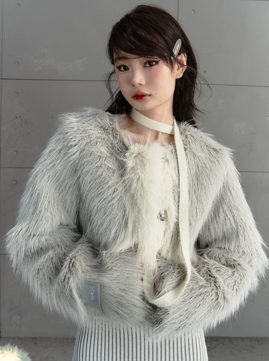 グレーファーホットガールショートコート