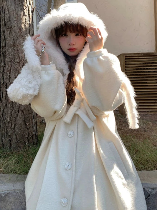 ピュアホワイトファーフードロングコート
