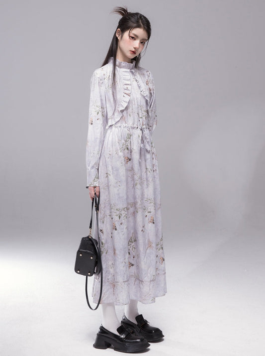 レトロフラワースモークサンドインクワンピース