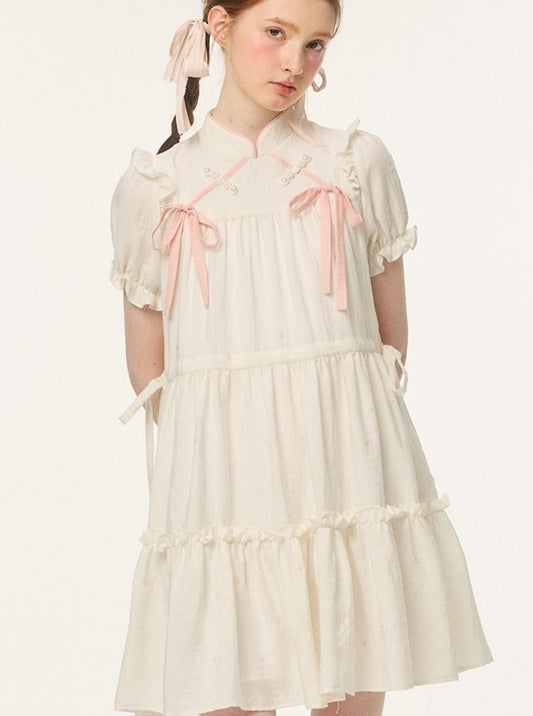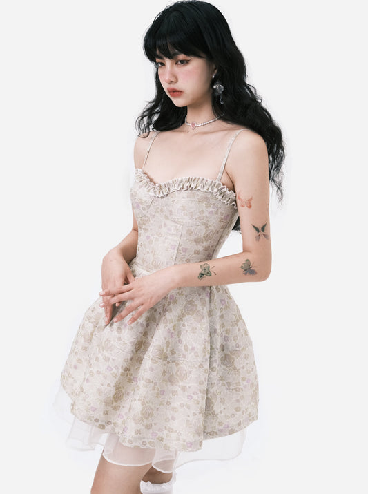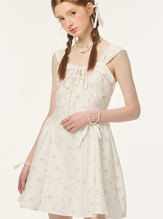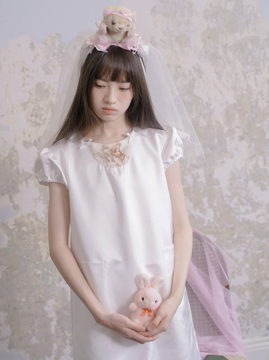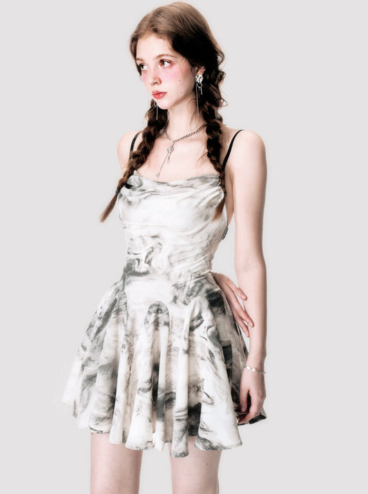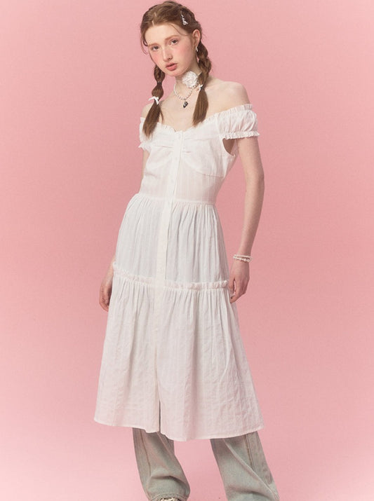 ピュアホワイトサスペンダーウエストロングスカートワンピース
