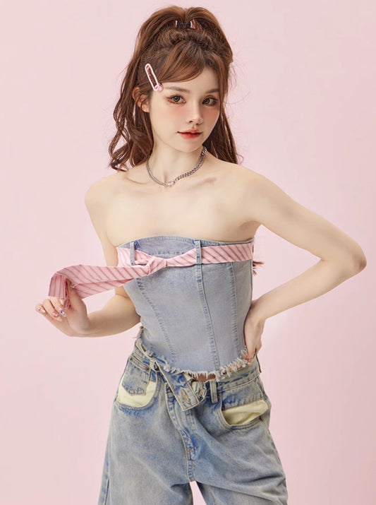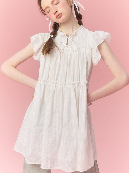 ハイウエストスリムショートパフスリーブウエストシャツ