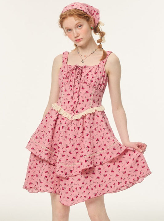 リトルフラワーワンピース×レトロチェックワンピース×ピンクフラワーワンピース