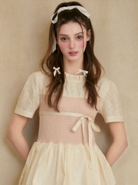 ホワイトインナーパンツ付きウエストマークケーキドレス
