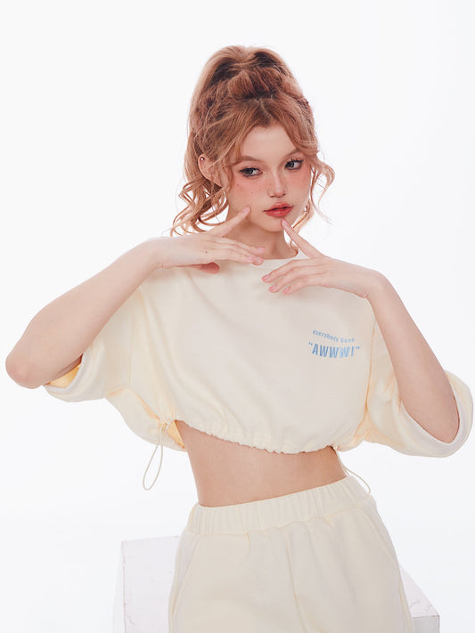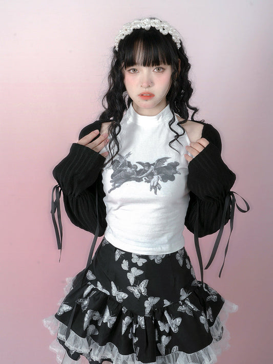 ベビーフリルフェイクカラーバタフライバブルスリーブトップス