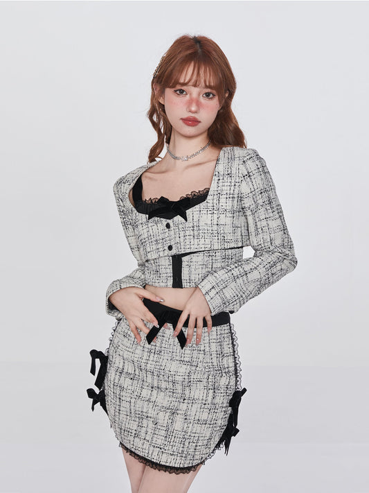 リボンフリルカラーフラワーシアージャガードショートアウター