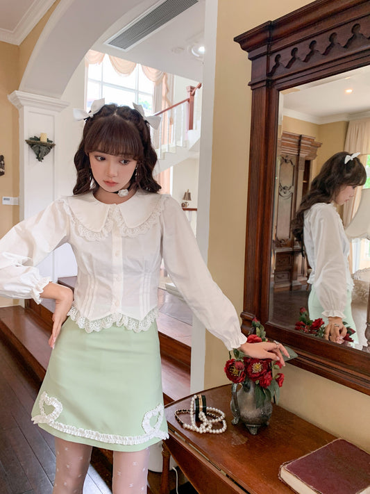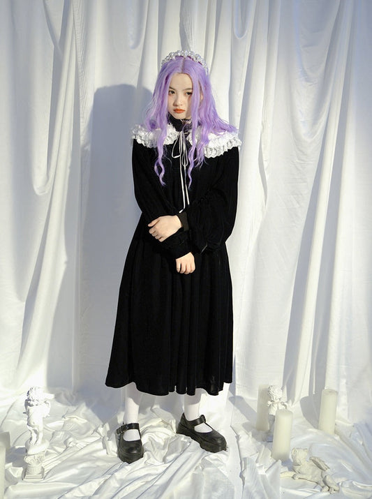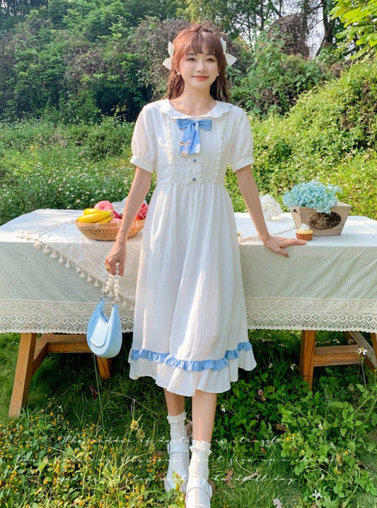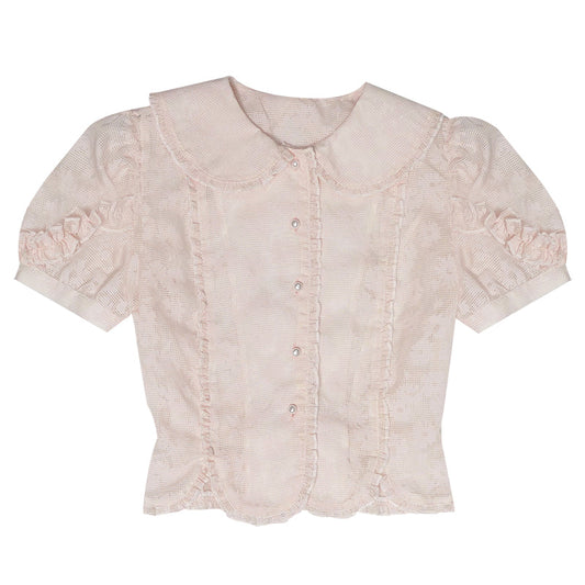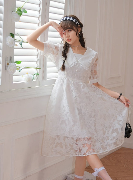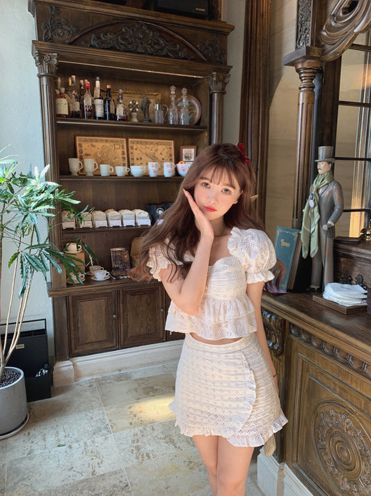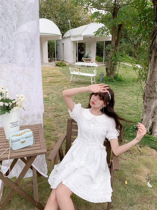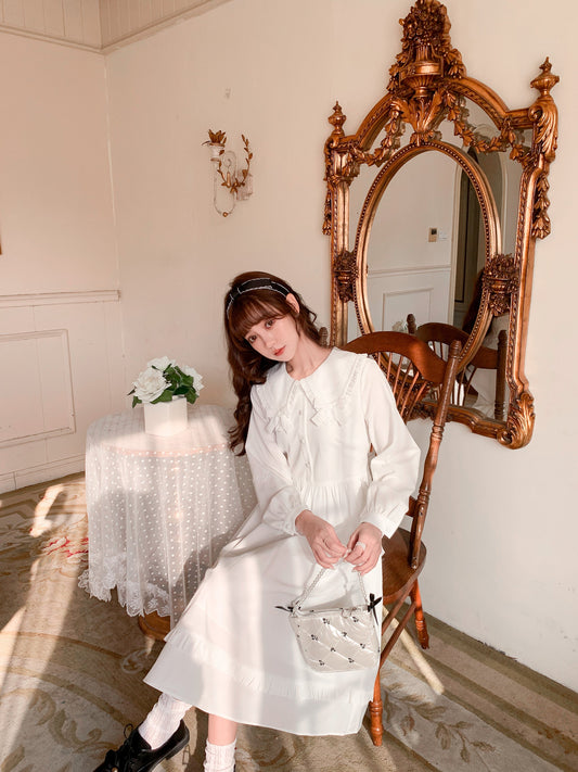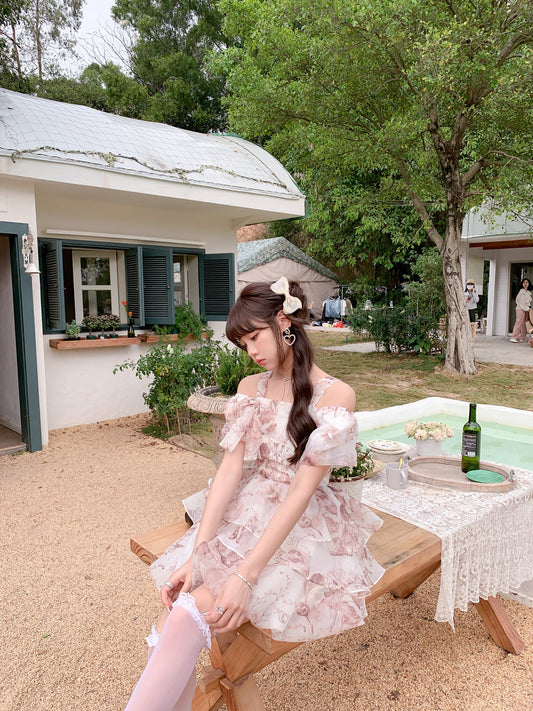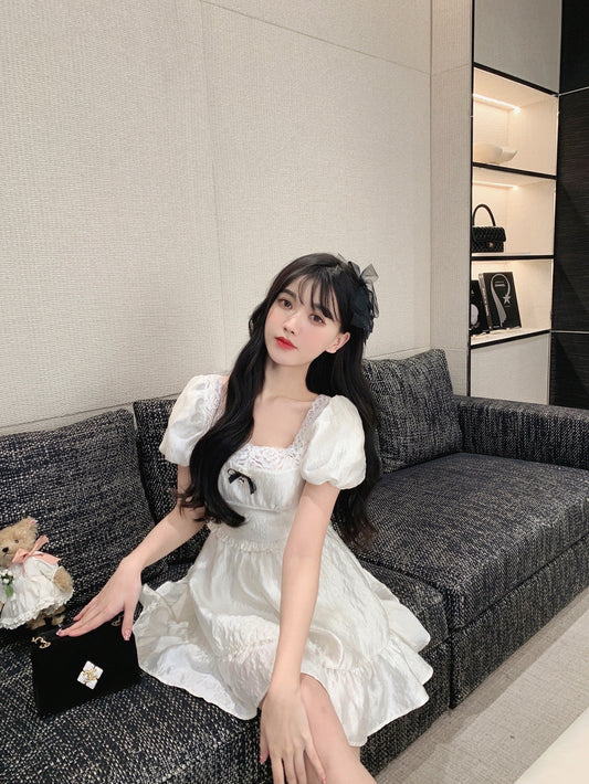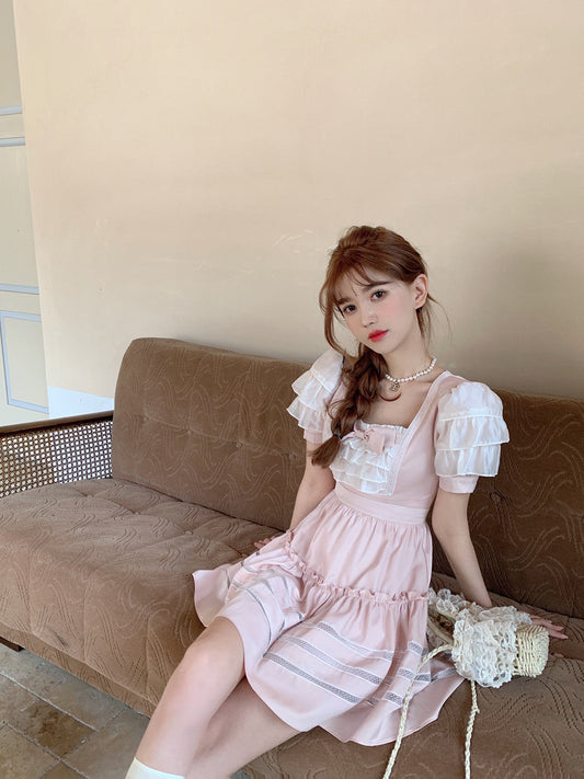 クリーミーパウダーレーススイートプリンセスパフスリーブドレス