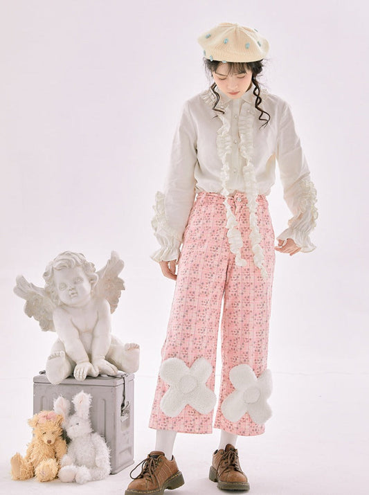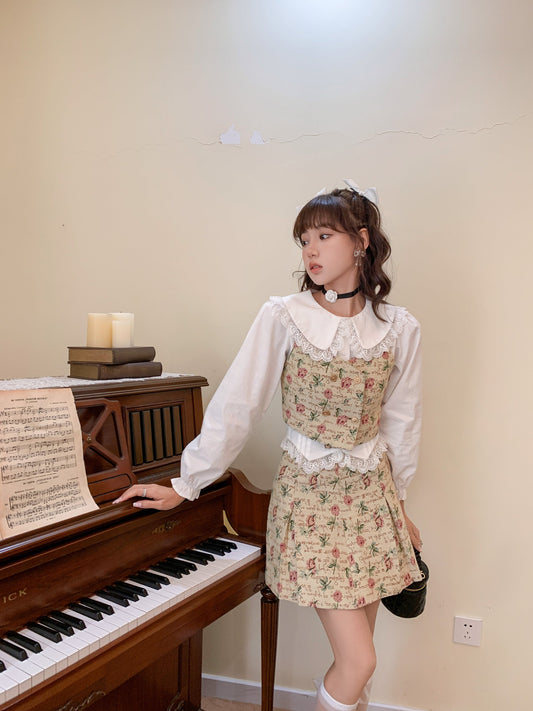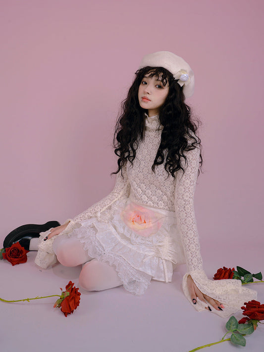 ジャガードレイヤードフラワーピュアホワイトキュートフレアスカート