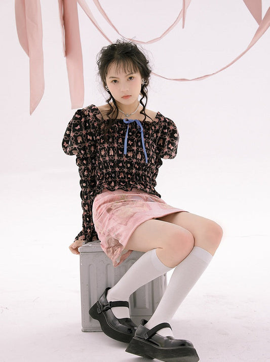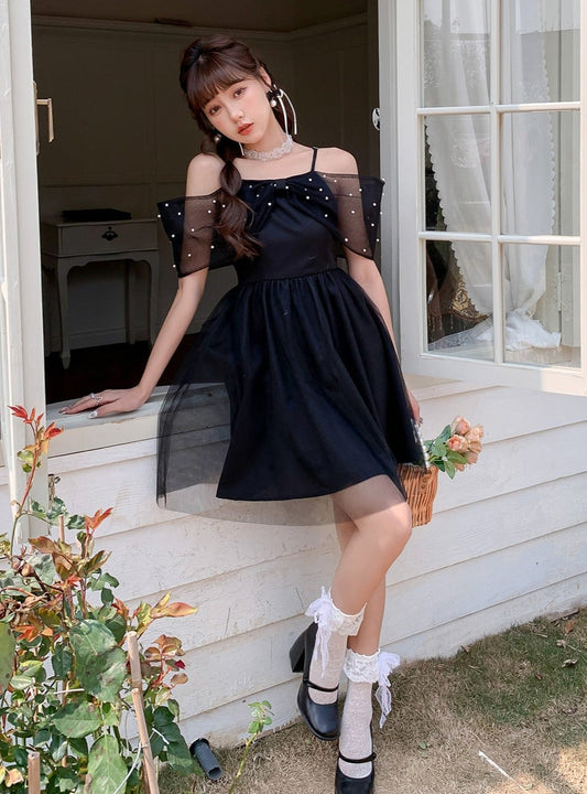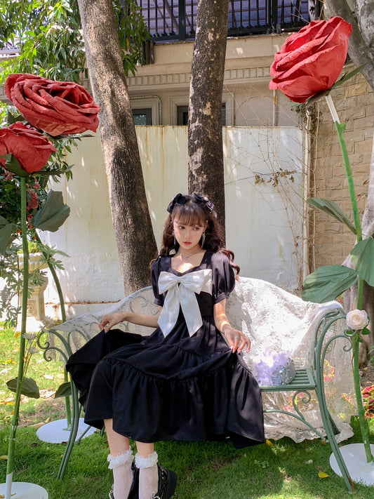 プリンセスパフスリーブウエストクロスバタフライワンピース