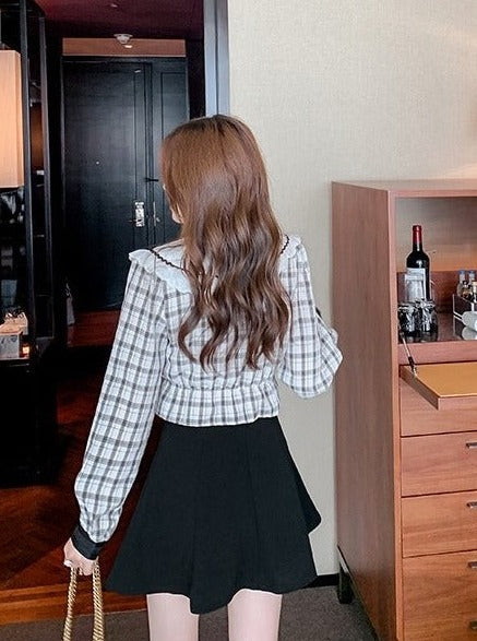 セーラーカラーチェックリボンフリルトップス