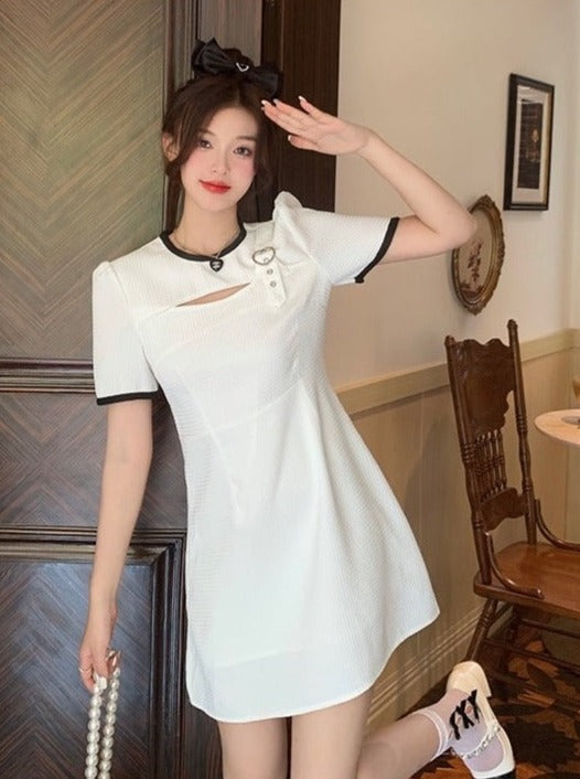 ハートリングショルダーストラップパイピングスプリットワンピース