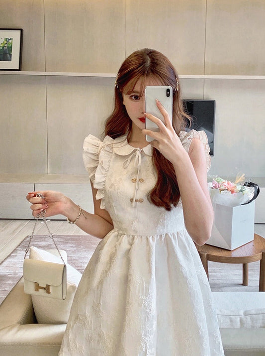 エンボスフリルノースリーブドールカラープリンセスチャイナドレス