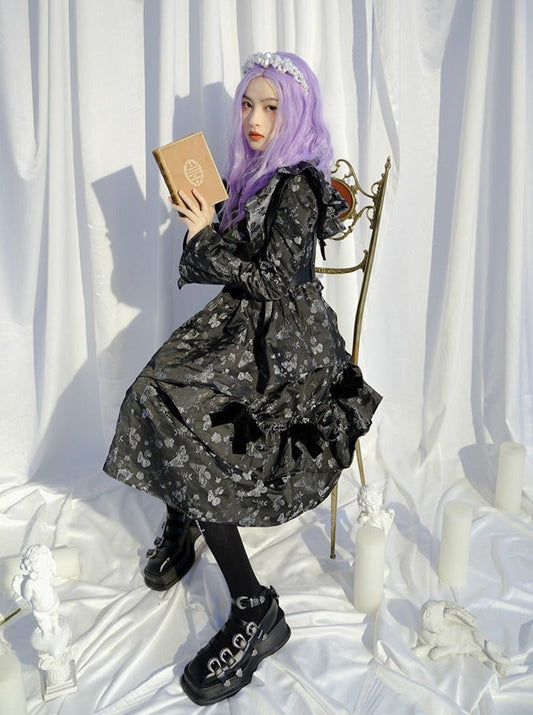 クロスリボンチョーカーネックデザインビスチェティアードロリータドレス