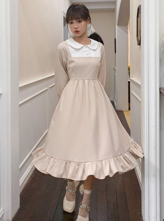 ポインテッドレースカラーパフショルダーレイヤードワンピース