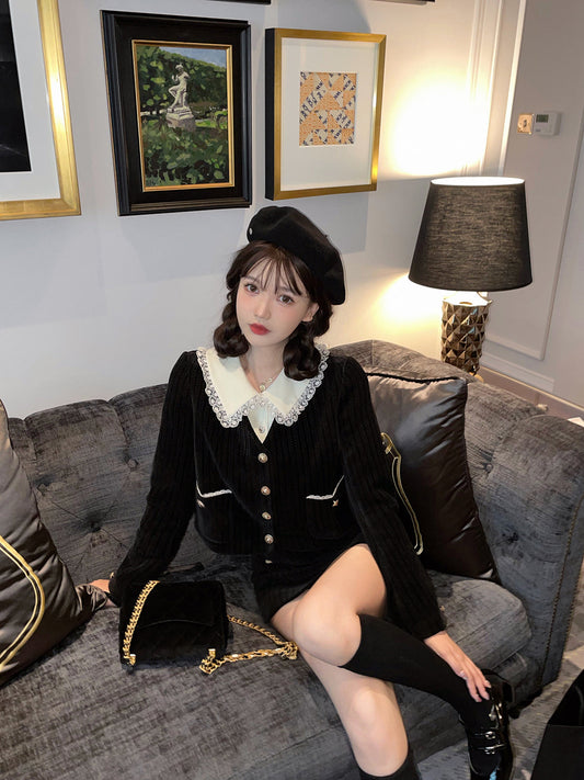フリルリボンセーラーカラーファージャケット+スカート