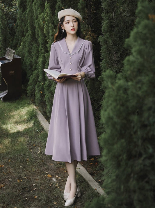フレンチスタイルレトロミッドレングワンピース