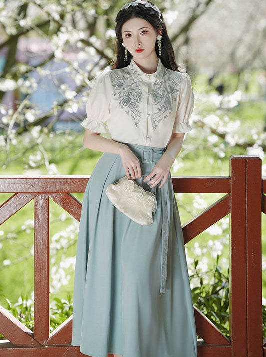 サマーレトロブラウス+ロングスカート