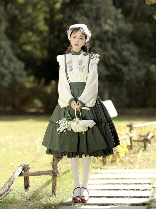 ポインテッドカラーフリルブラウス+レースアップフリルスカート