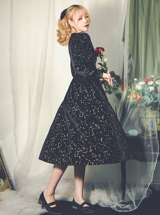 スターシャイニーウエストマークベルベットドレス