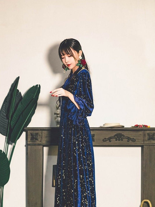ブルースターシャイニーベルベットドレス