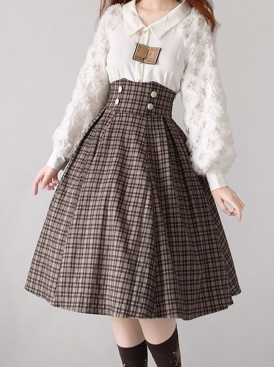 ビックリボンブラウス+レトロサススカート