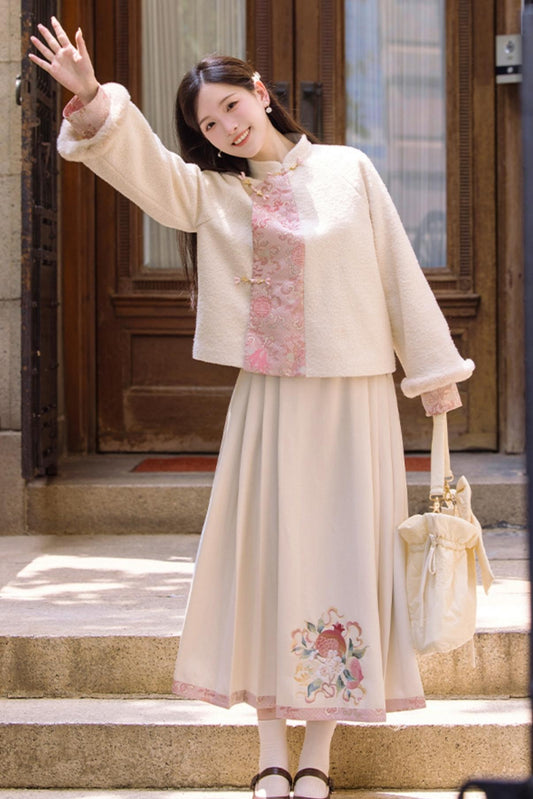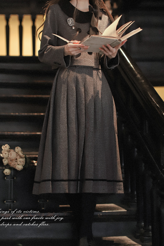 【予約商品】レトロドールカラーウールショートコート+プリーツロングスカート