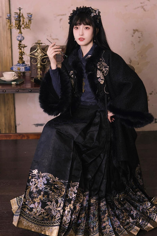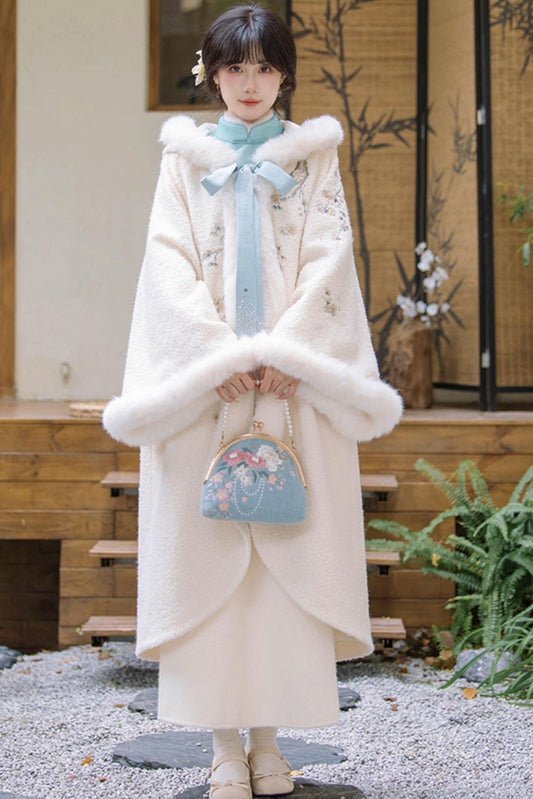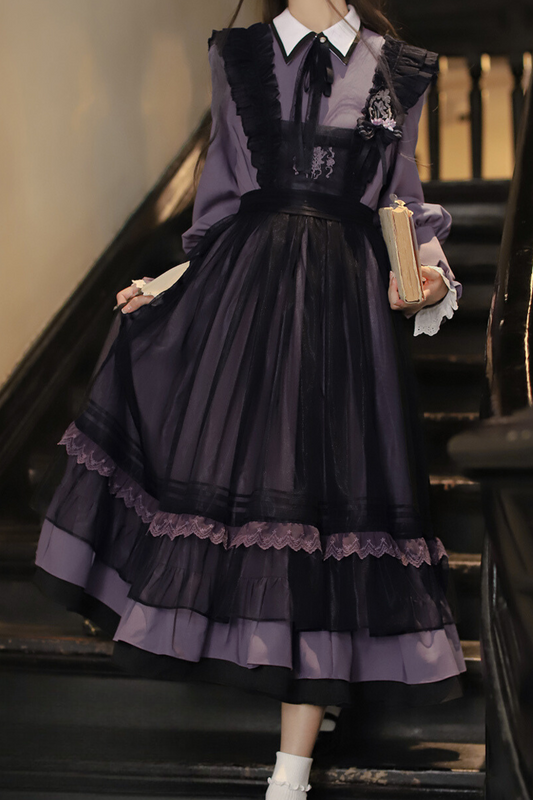 【予約商品】レトロアカデミアサスペンダースカート+ストライプシャツ+フードマント+ショートジャケット+カラー+ブローチ