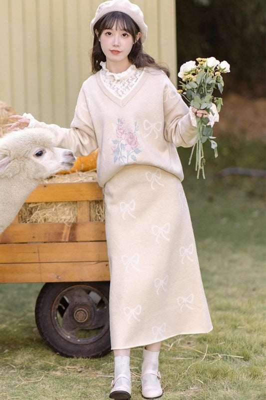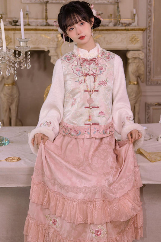 【予約商品】スタンドカラーベストアンドレーススカートセット