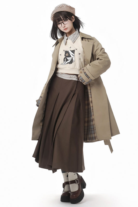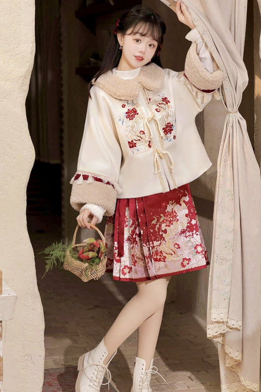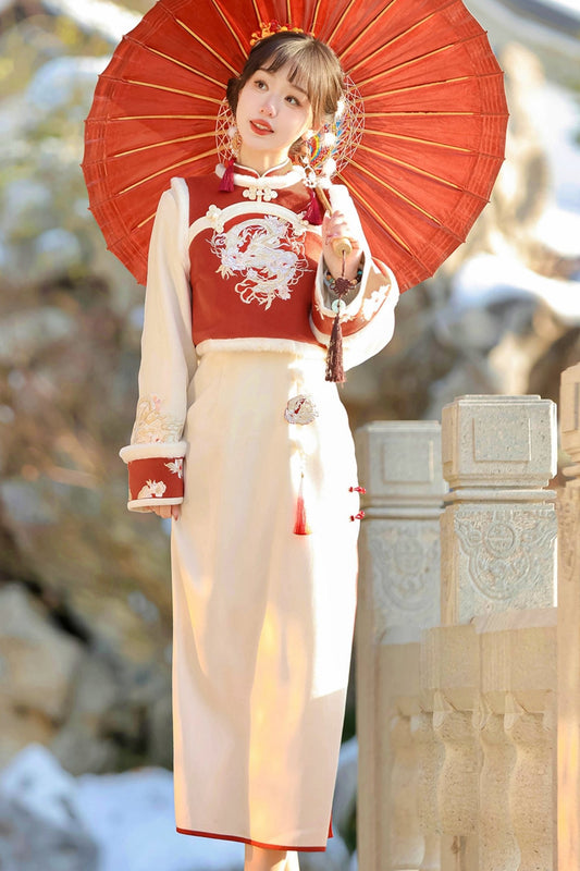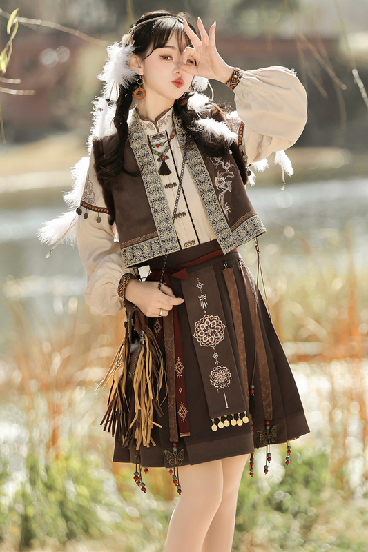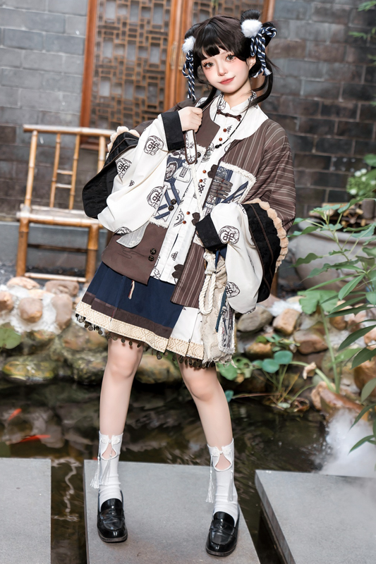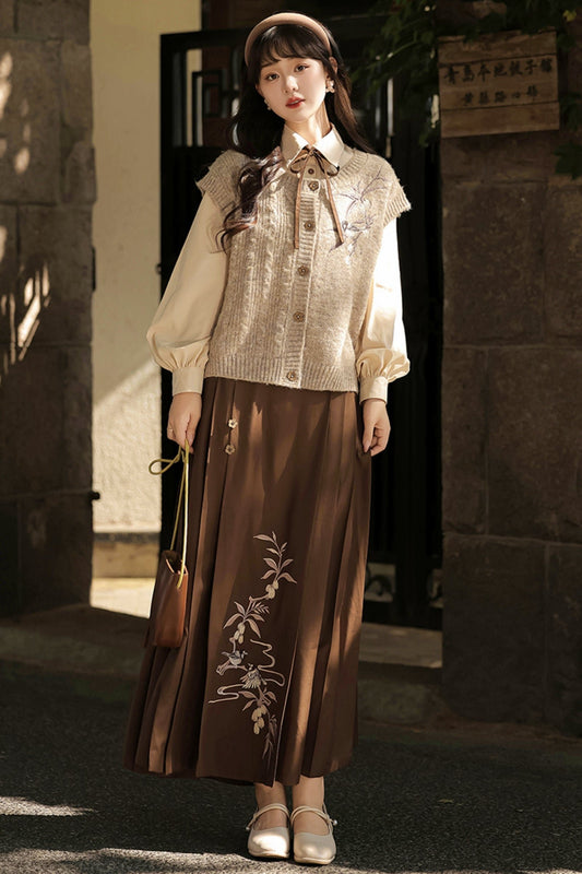 レトロオータムチャイニーズベスト+シャツ+スカート