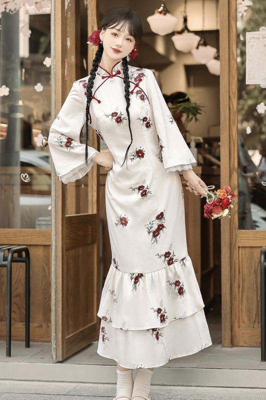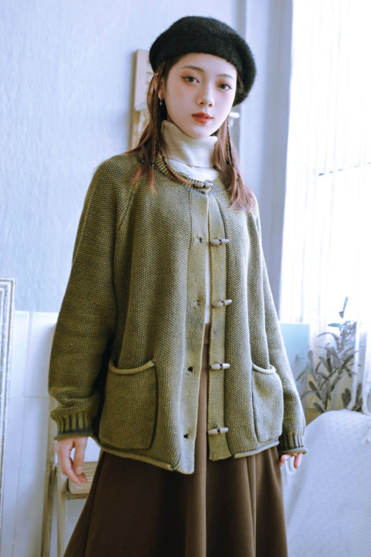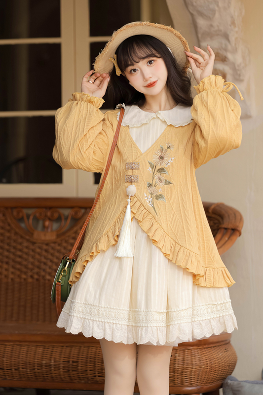 レトロフラワーチャイナカーディガン+フレアドールカラーワンピース