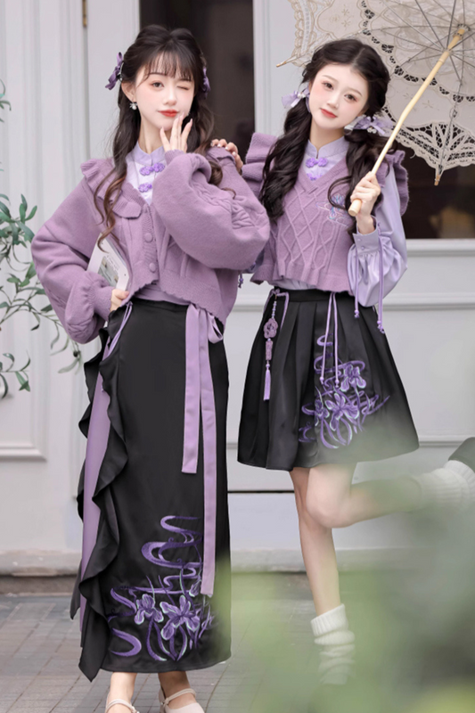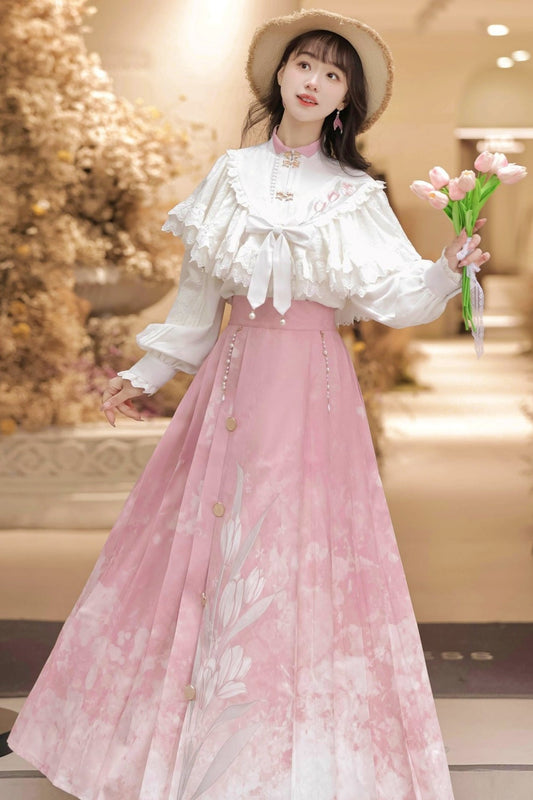 ニューチャイニーズスタイルクラウドショルダー+シャツ+ホースフェイススカート