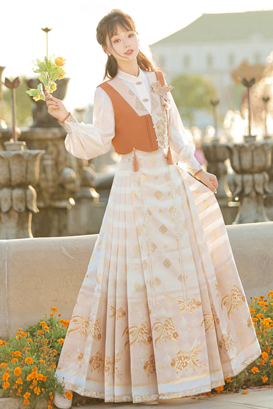 ゴールドフィッシュレトロチャイナガーリーチョッキ+トップス+スカート