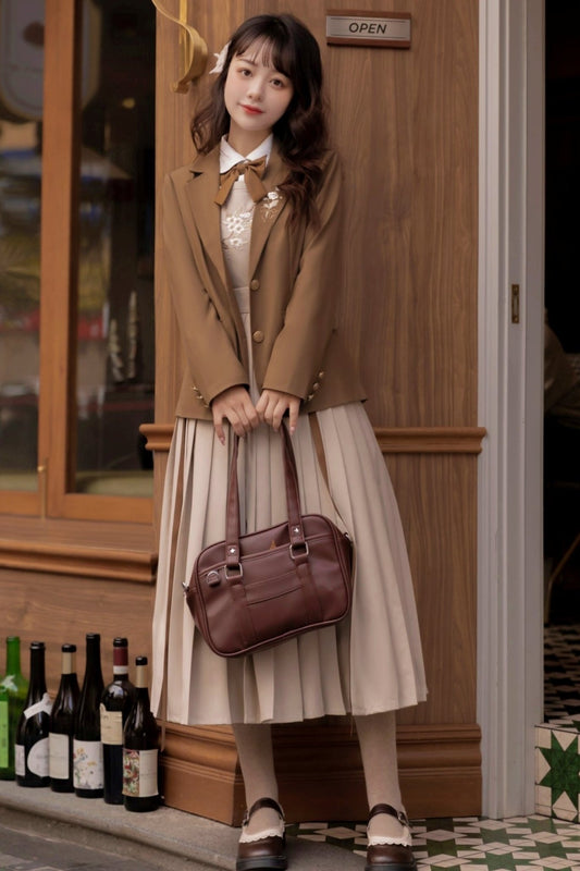 モディファイドハンフーカレッジブレザー+シャツ+サスペンダードレス