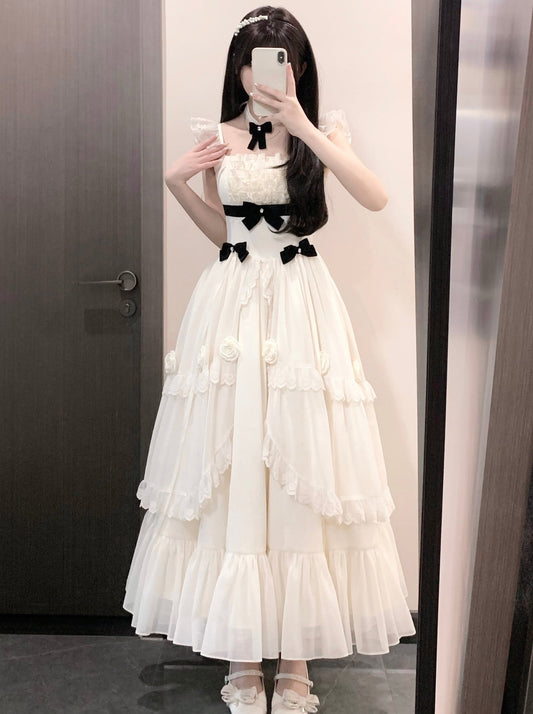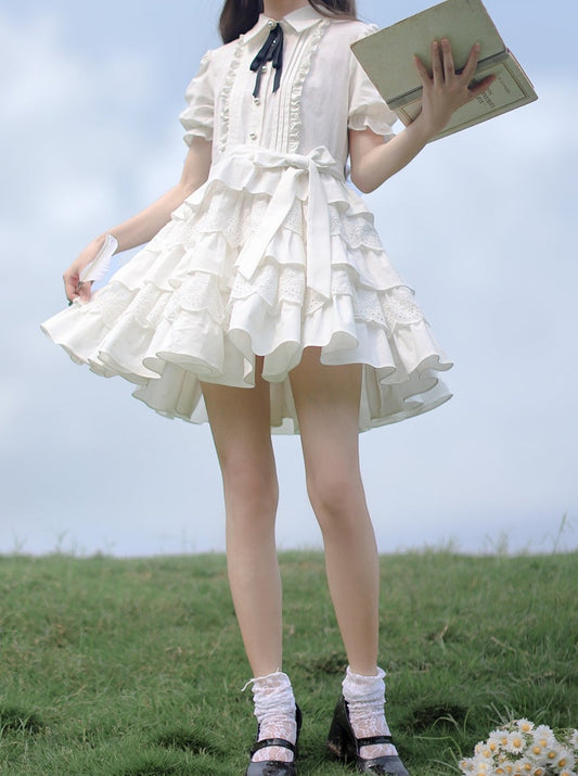 【予約商品】ティアードピュアホワイトワンピース+スリムリボン