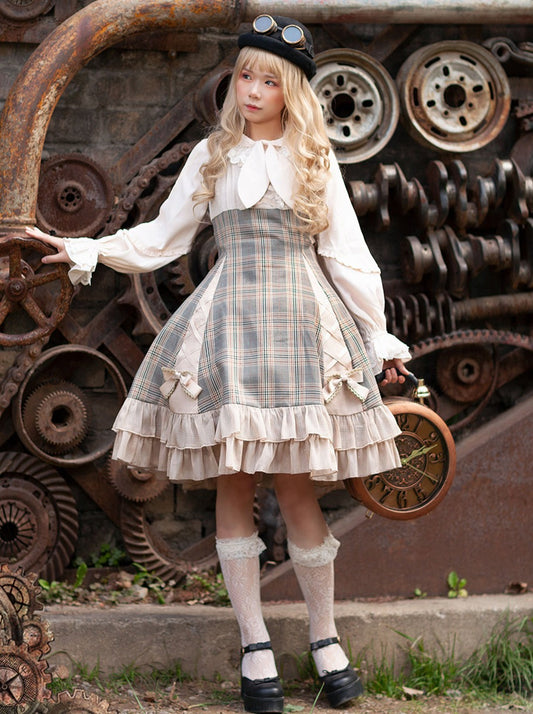 【予約商品】カントリーガールチェックサスペンダースカート+シャツ+エプロン