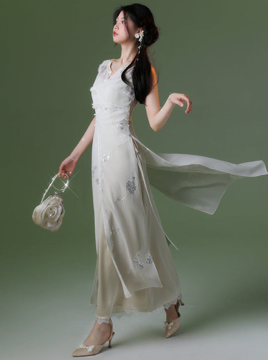 【予約商品】フレンチエレガンスロングホワイトワンピース