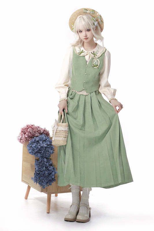 【予約商品】レトロサマードレス+パフスリーブシャツ+ネクタイ+バッジ