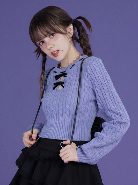 ステッチリボンケーブルニット