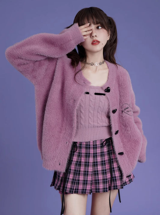 ストロベリートフィーファーラブボタンカーディガン+タイトキャミソール