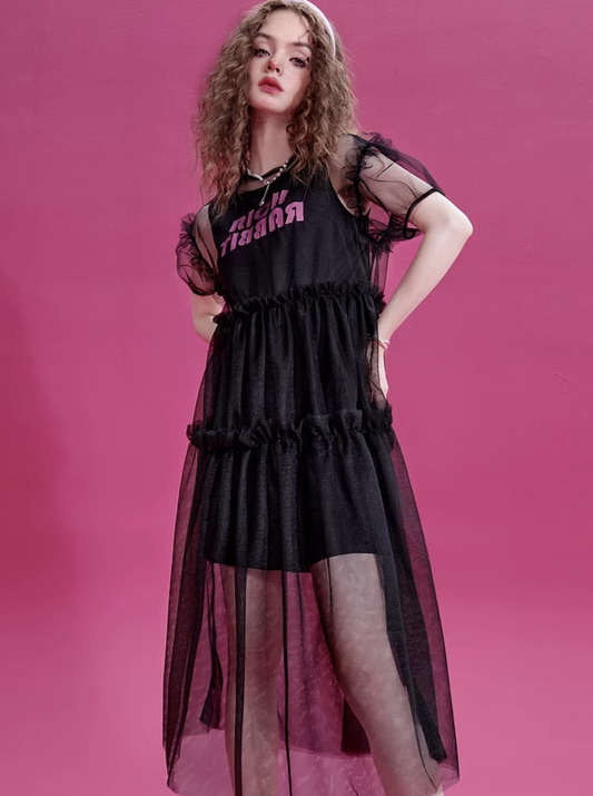 クールパンクサブカルチャーウエストストラッププリントドレス