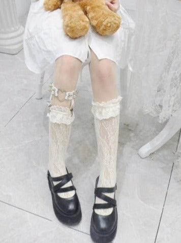 ポイントレースリボンフィッシュネットニーハイソックス