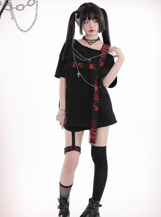 オフショルレースクロスストラップアシメTシャツ