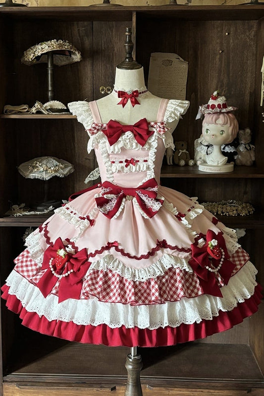 【1月29日予約締切】エレガントルージュロリータフリルリボンサスドレス+チョーカー
