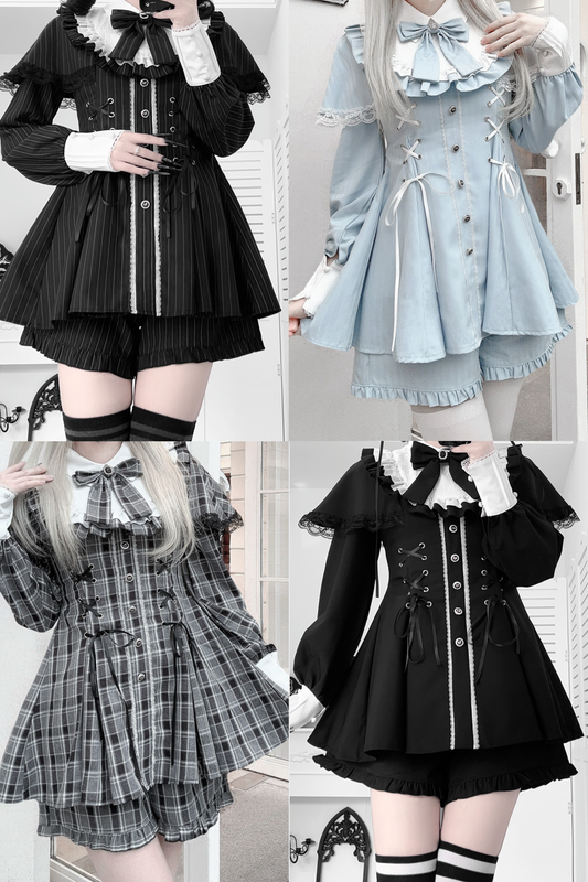 【1月20日予約締切】リボンフリルカラーケープレースアップドレスセットアップ