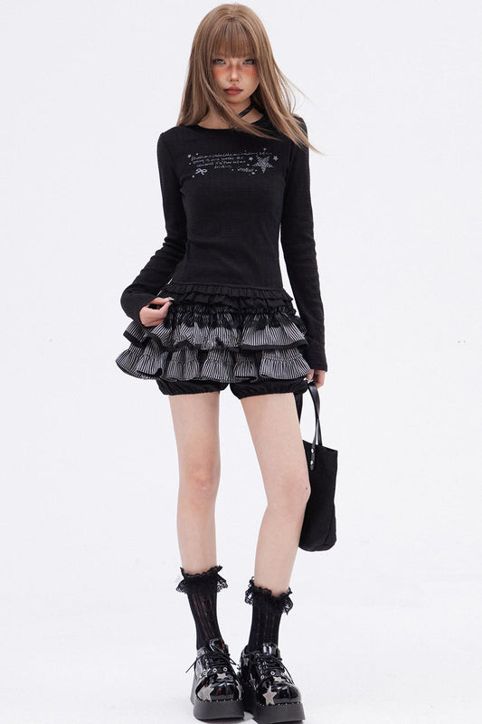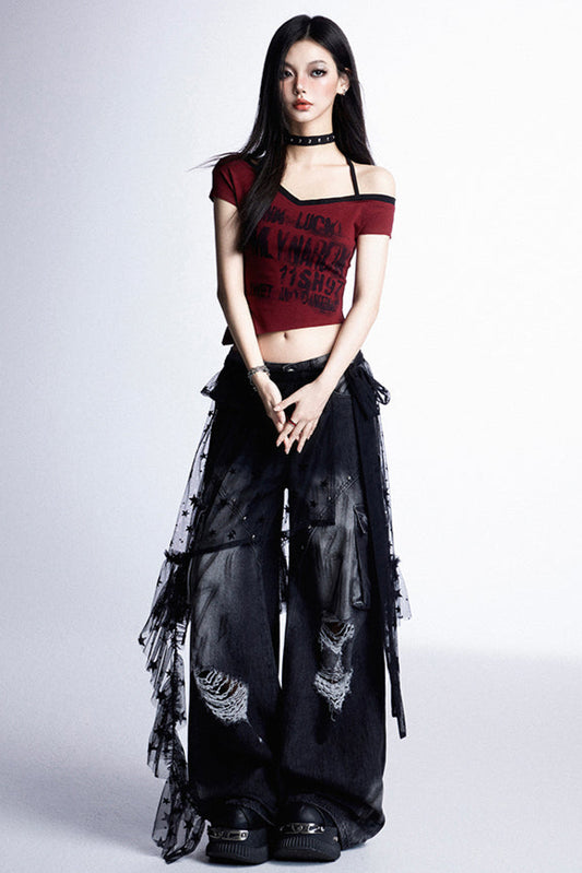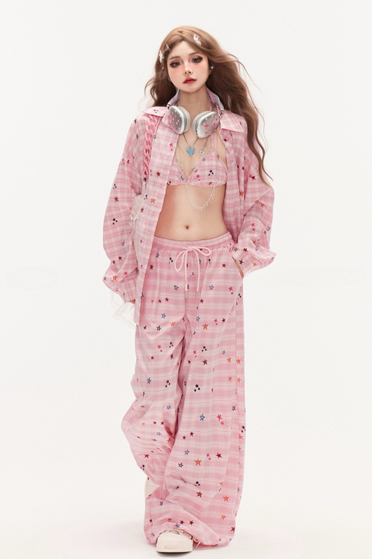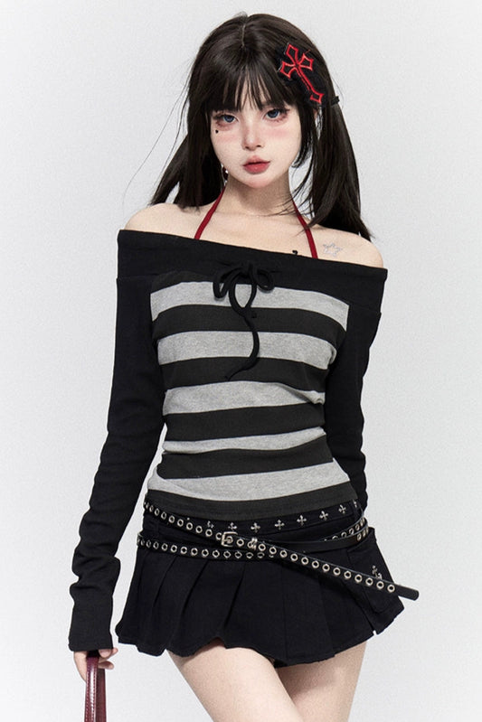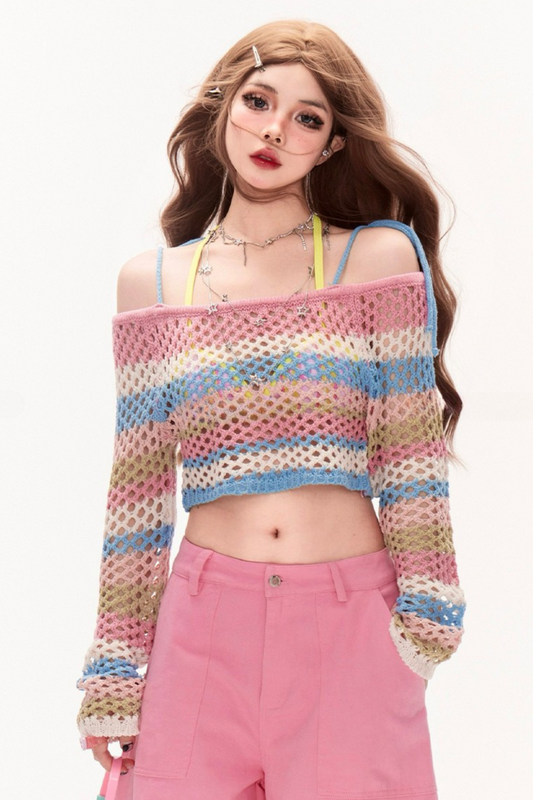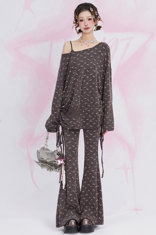 オフショルダートップス+キャミソール+フレアパンツ+ショートパンツ